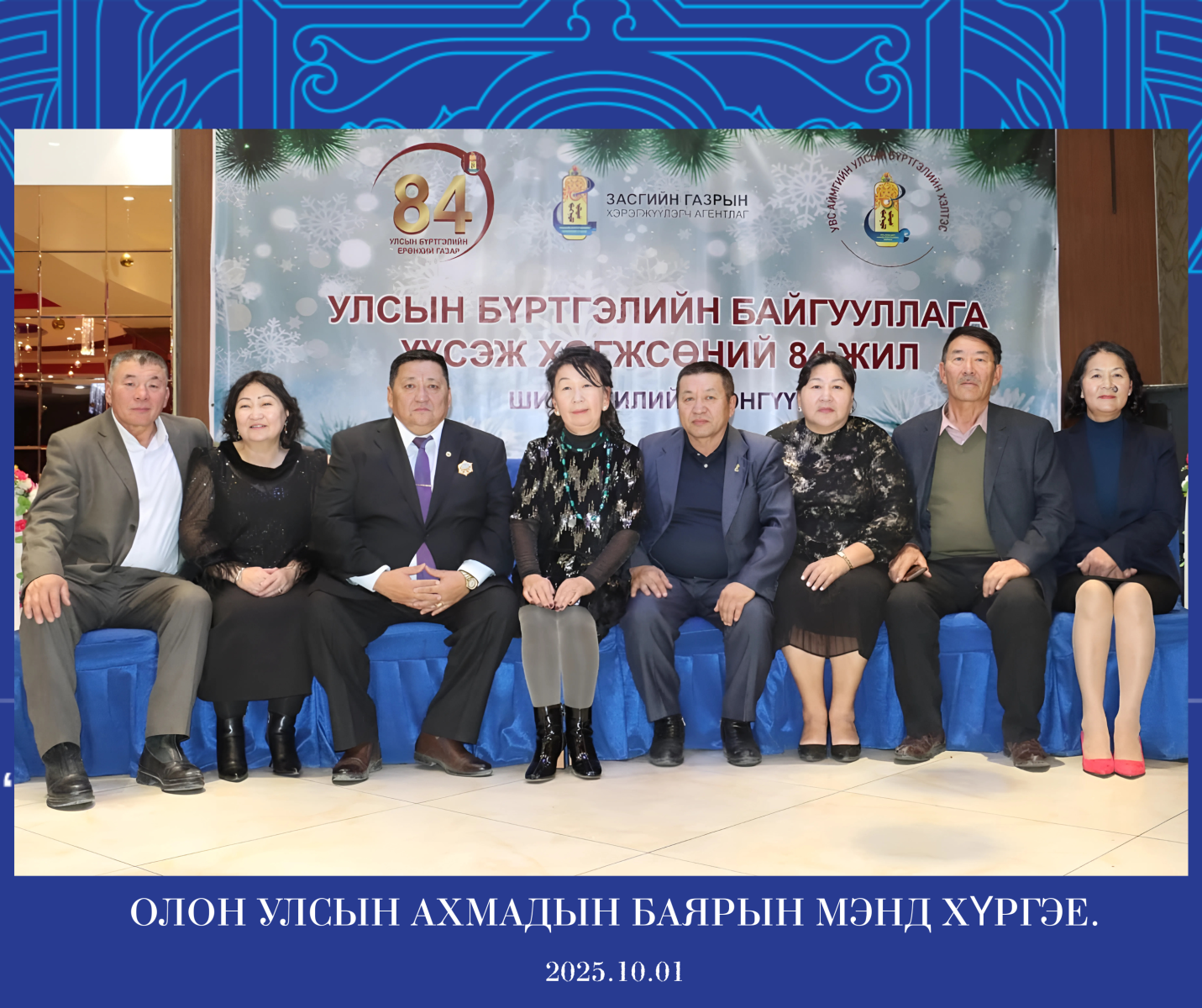Та бүхний үнэнч хөдөлмөр, чин сэтгэлийн зүтгэл, хичээл чармайлт нь улсын бүртгэлийн хөгжил, өнөөгийн ололт амжилтын үндэс суурь болж, залгамж халаа бидэнд үлгэр дууриал болсоор ирсэн билээ.